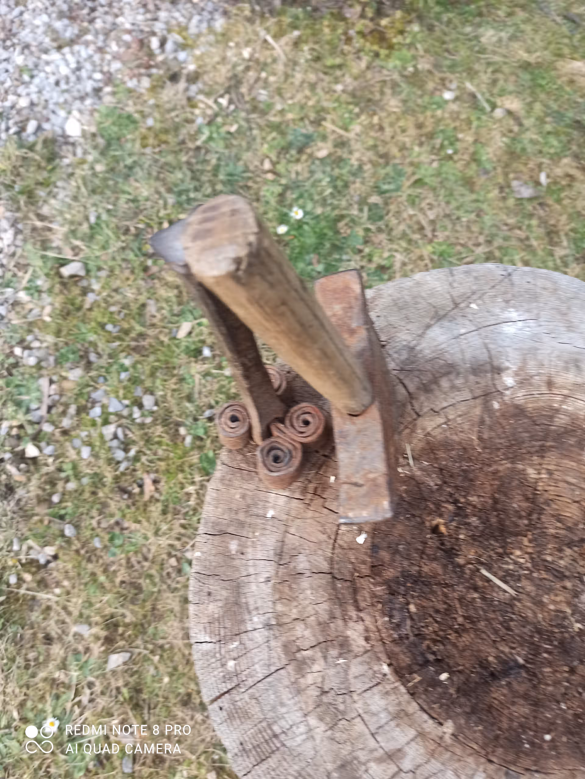 Que veut dire piquer une lame de faux? Cela consiste à marteler la lame de la faux de façon à l’étirer sur la zone tranchante de la lame pour refaçonner le tranchant de façon régulière et en effacer les irrégularités et le rendre plus fin. Après cette opération, on peut procéder à son affutage avec une pierre à affuter. Sur les photos ci-dessus, vous repérerez le billot de bois sur lequel sont déposés le marteau et la petite enclume qui servent à piquer la lame de la faux.